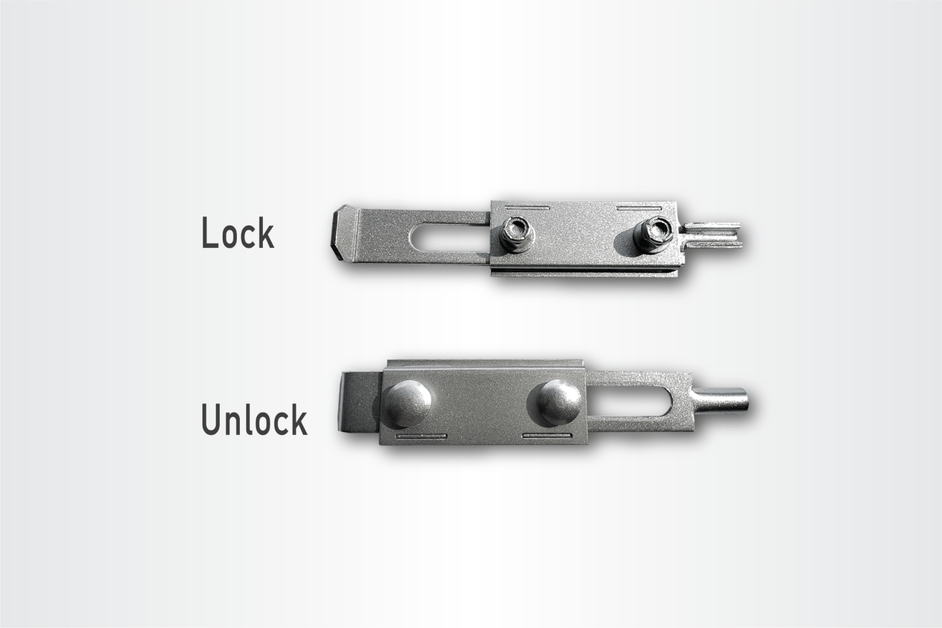 - Locks at the side on the right and left of aluminium or galvanized assembled side guider
